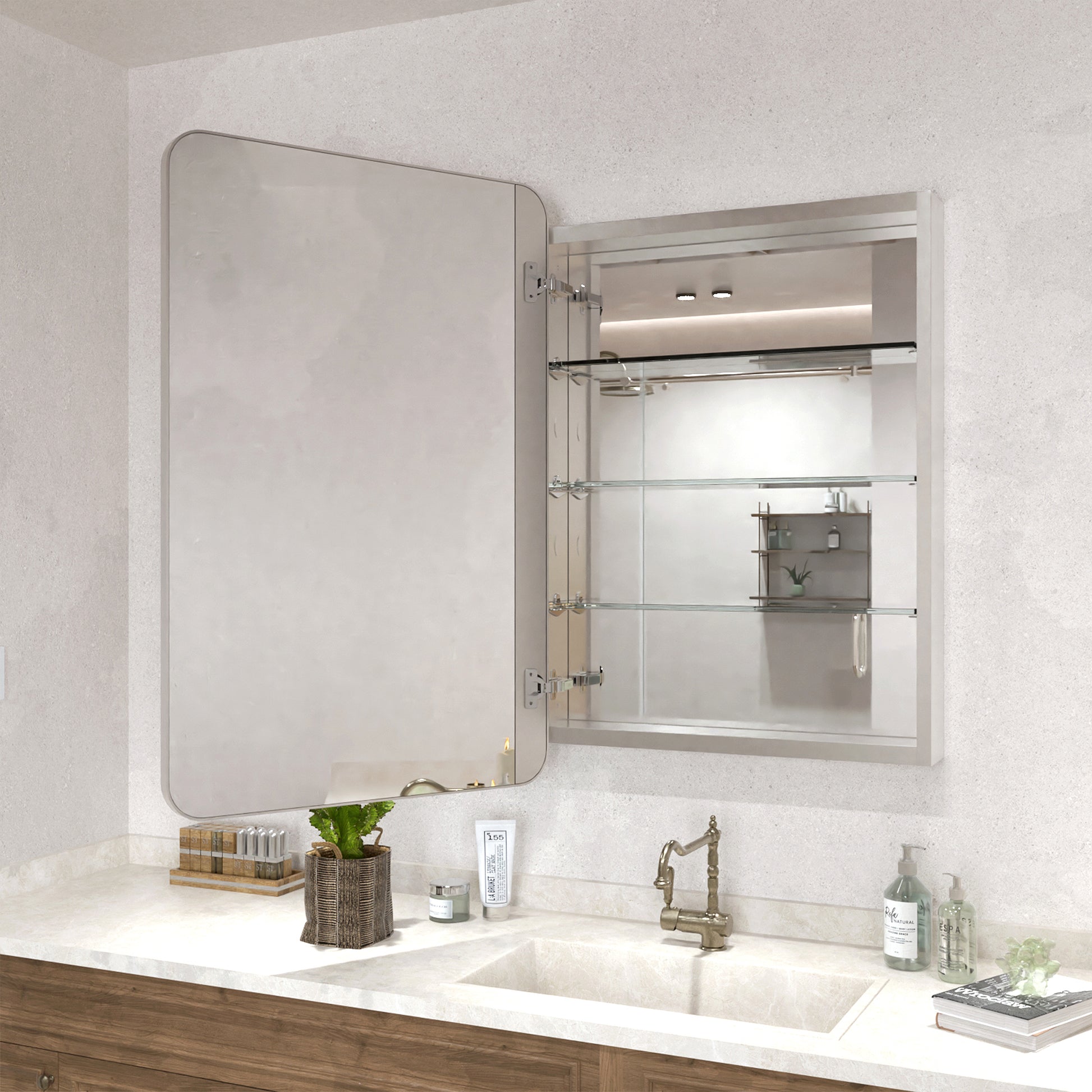 Multi-functional design: | integrating mirror and medicine cabinet saves space, enhancing the room's aesthetics and spaciousness |