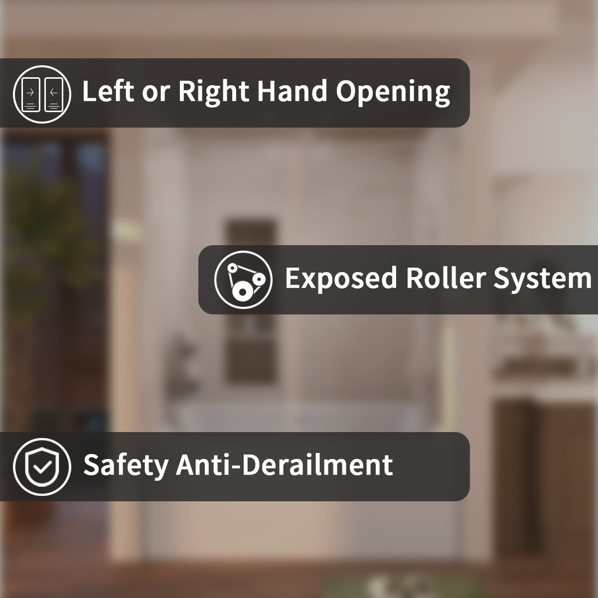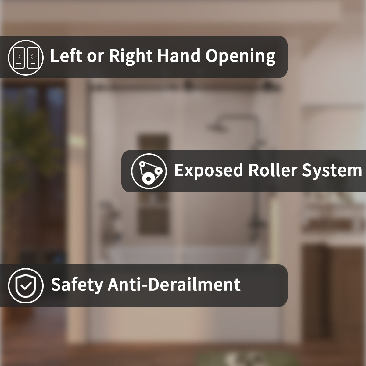 | Features: | includes 1-stationary panel and one sliding panel, with reversible installation for both left- or right-hand opening options |