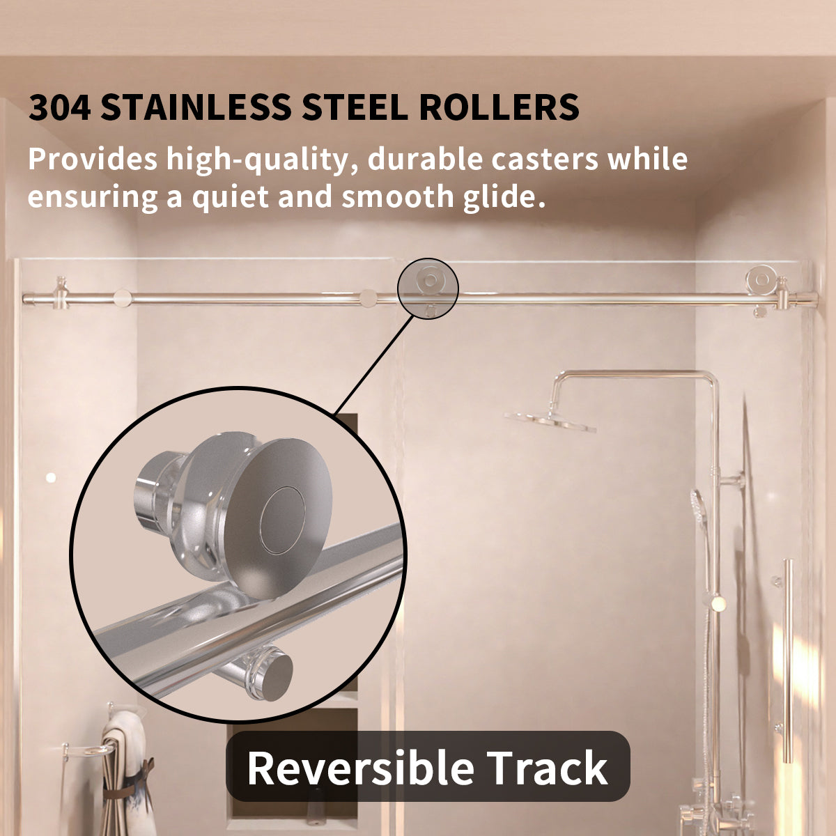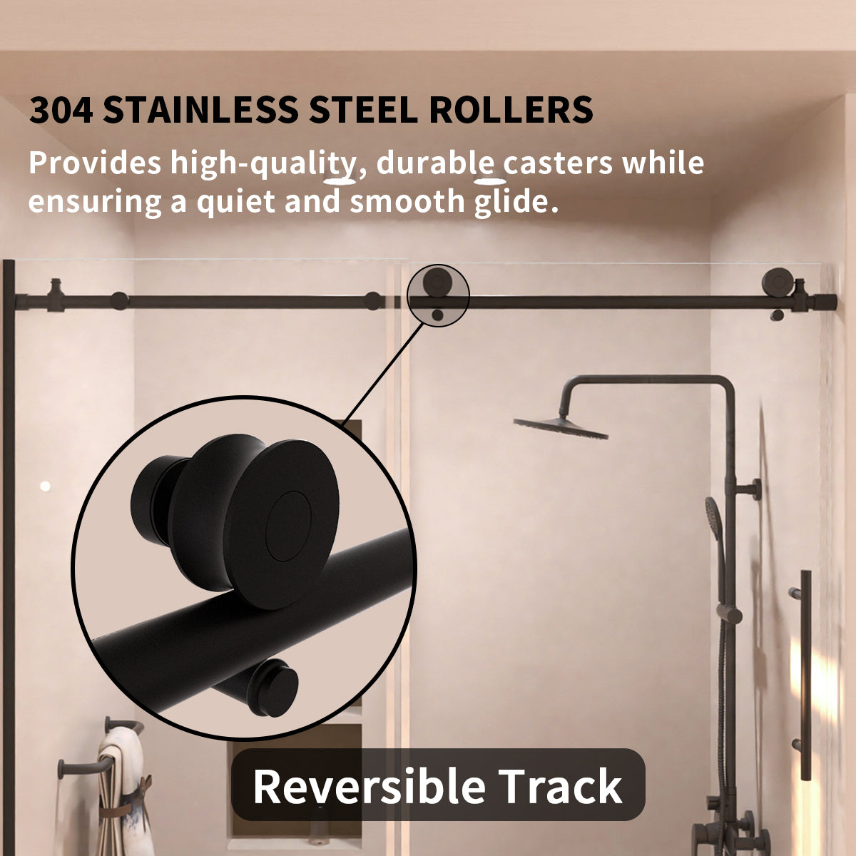 | Smooth glide: | features a dual-wheel roller system for effortless and quiet sliding, supported by a rounded top rail |