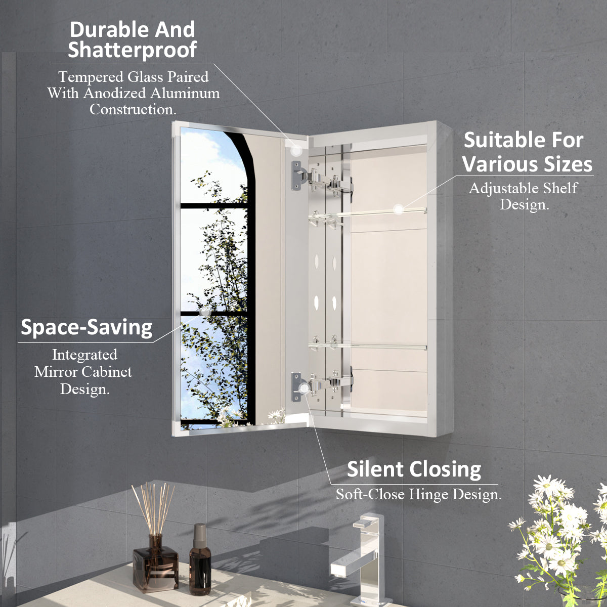Multi-functional design: | integrating mirror and medicine cabinet saves space, enhancing the room's aesthetics and spaciousness |