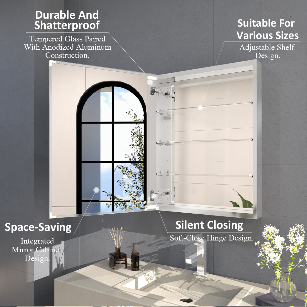 Multi-functional design: | Integrating mirror and medicine cabinet saves space, enhancing the room's aesthetics and spaciousness |