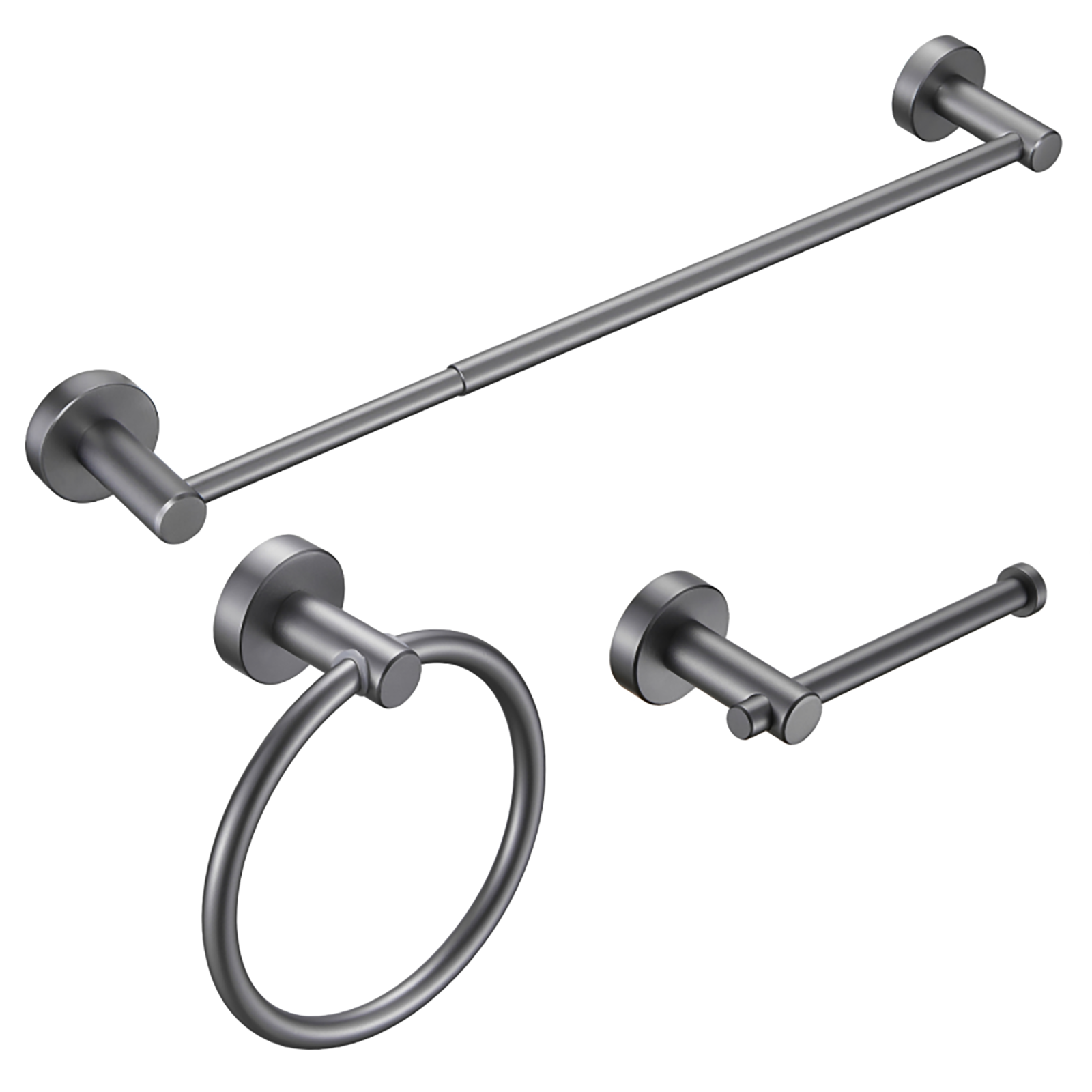 | Complete set for comprehensive needs: | This 3-piece set includes an adjustable hand towel bar, a toilet paper holder and a towel ring, meeting various needs with a single purchase |