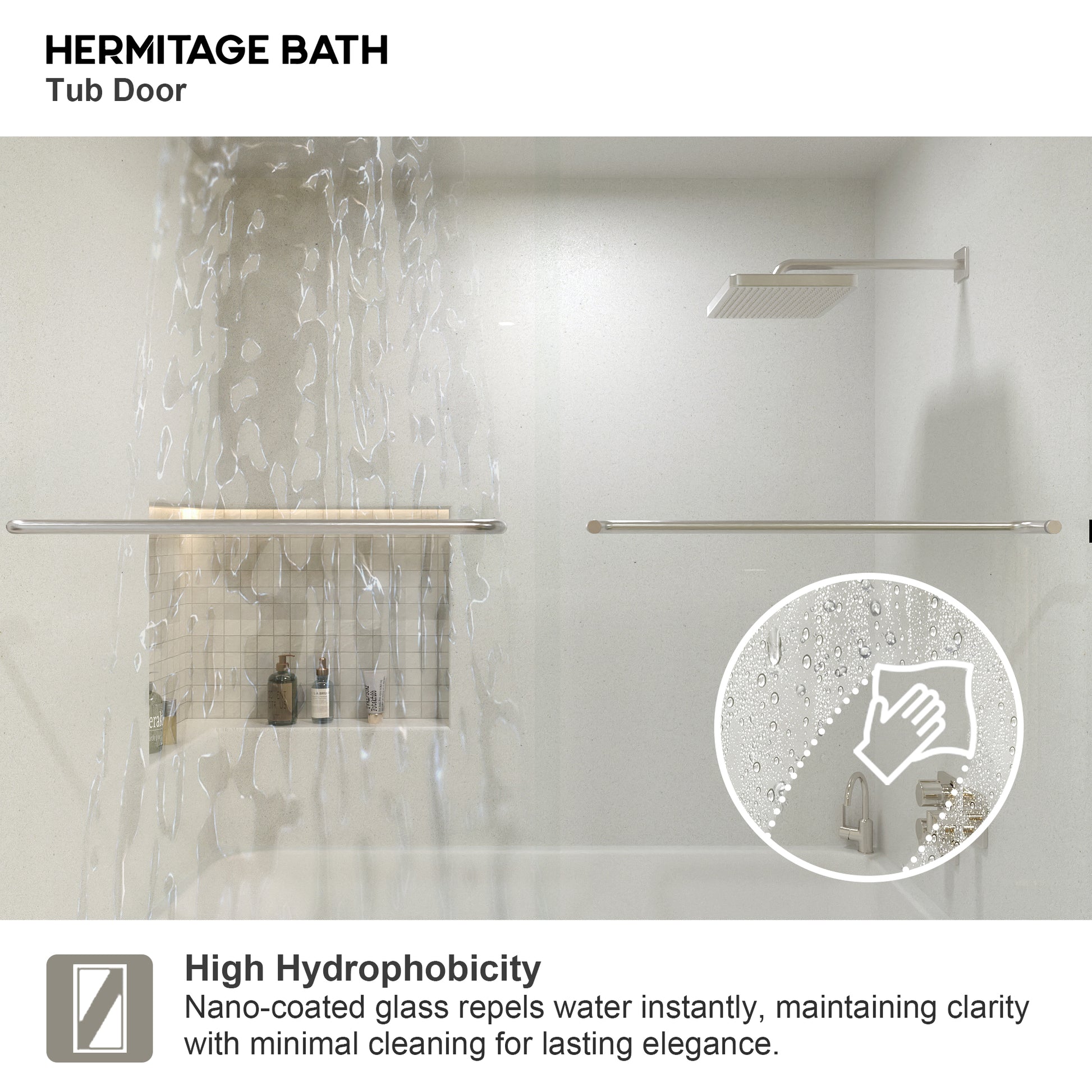 Tired of the same old shower stalls. Craving a more comfortable and convenient bathing experience. Hermitage Bath bathtub doors create the bathroom of your dreams! We understand that bathing is not just about cleanliness, but also a ritual to relax your body and mind. Made with high-strength tempered glass, shatterproof, ensuring safety for you and your family. Premium hardware resists oxidation and corrosion, standing the test of time. Frameless or ultra-narrow frame designs seamlessly blend into any bathroom style, exuding sophistication. Prevents water splashing, keeping your bathroom dry and tidy. Sliding design optimizes space, perfect for compact bathrooms.Stain-resistant coated glass wipes clean effortlessly, saving time and effort.High-end sliding tracks ensure effortless and smooth opening and closing.