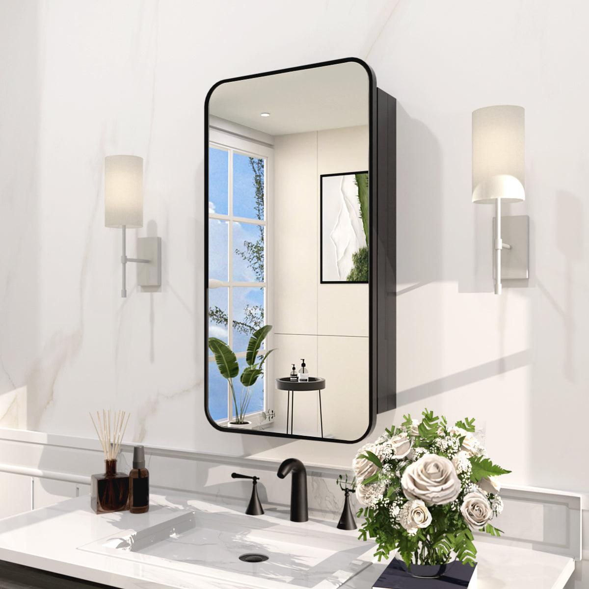 2: | Multi-functional design: Integrating mirror and medicine cabinet saves space, enhancing the room's aesthetics and spaciousness |