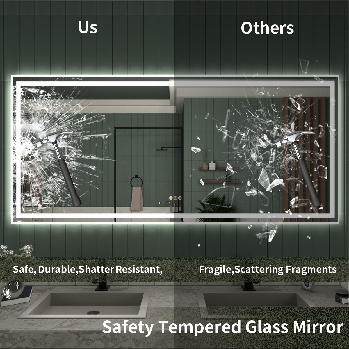 TaiMei LED Mirror, a perfect choice for modern homes. It features adjustable brightness and color temperature, perfectly suited for makeup and shaving. Innovative anti-fog technology ensures a clear reflection even after hot showers, eliminating the hassle of wiping the mirror. The brightness memory function adds convenience to your daily life by remembering your favorite lighting settings. The eco-friendly, copper-free high-definition silver mirror provides a vivid reflection, while ETL certification and an IP44 waterproof rating ensure safety and reliability.TaiMei: The wise choice for affordable elegance and enduring beauty.