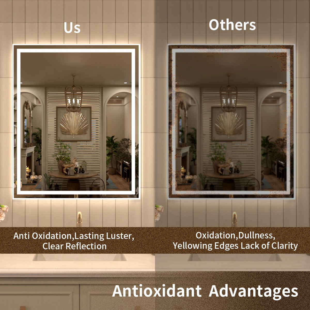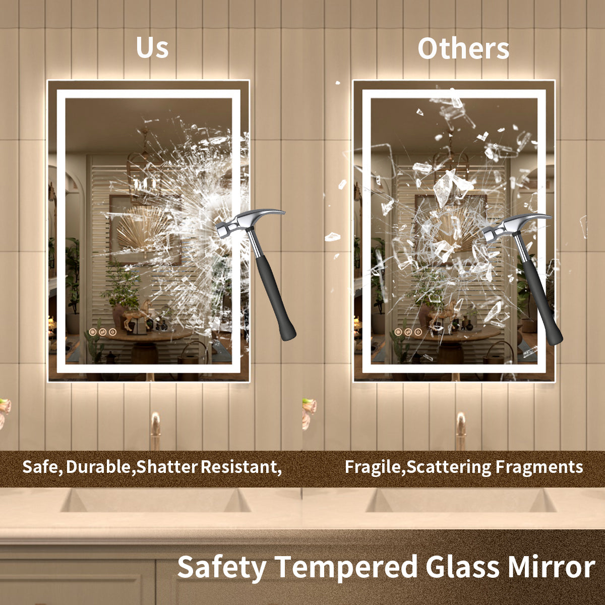 Our mirrors are crafted from tempered glass, making them resistant to breakage. Each mirror is packaged with thickened foam and reinforced cardboard to maximize shipping safety. In the rare event of transit damage, we offer a worry-free replacement or return service.