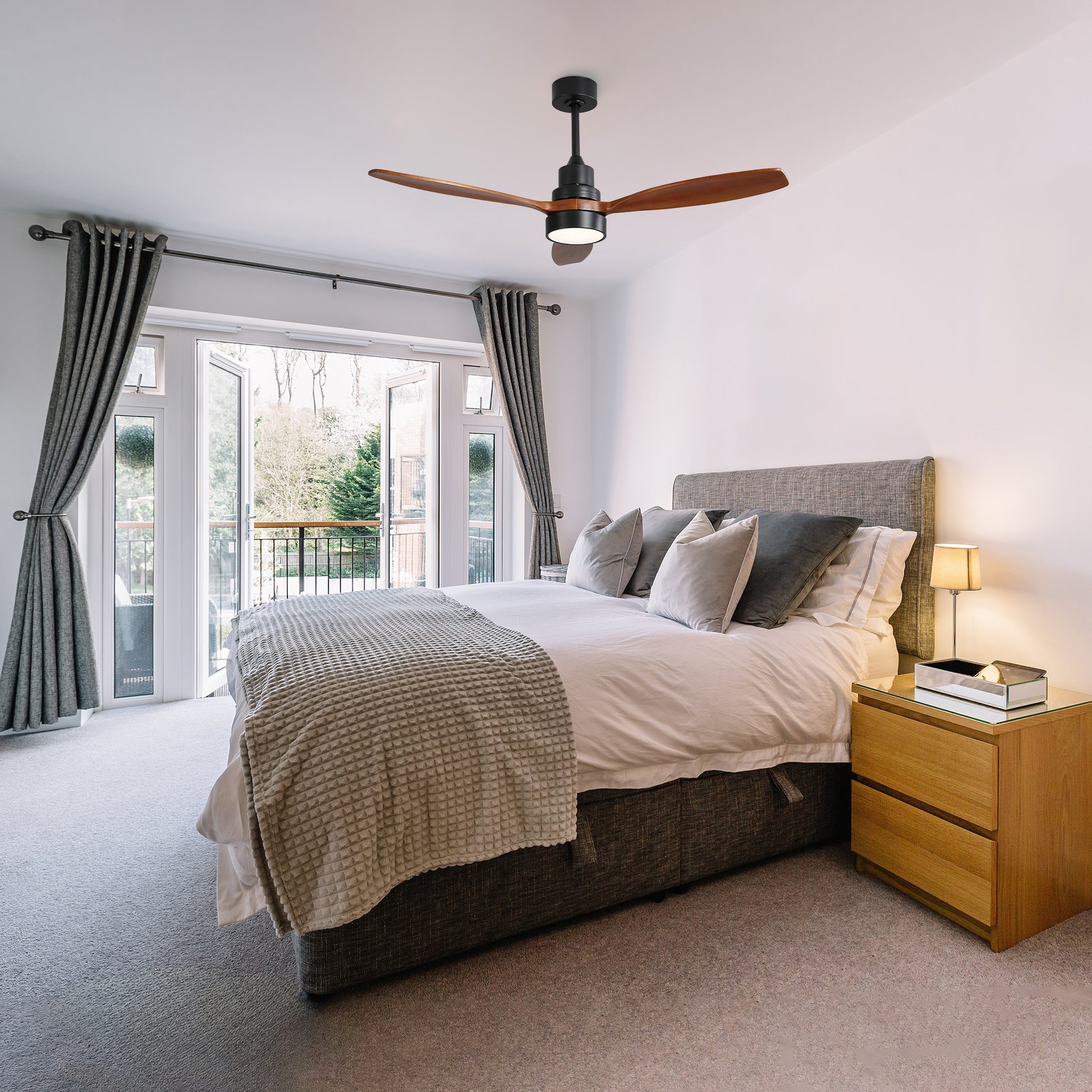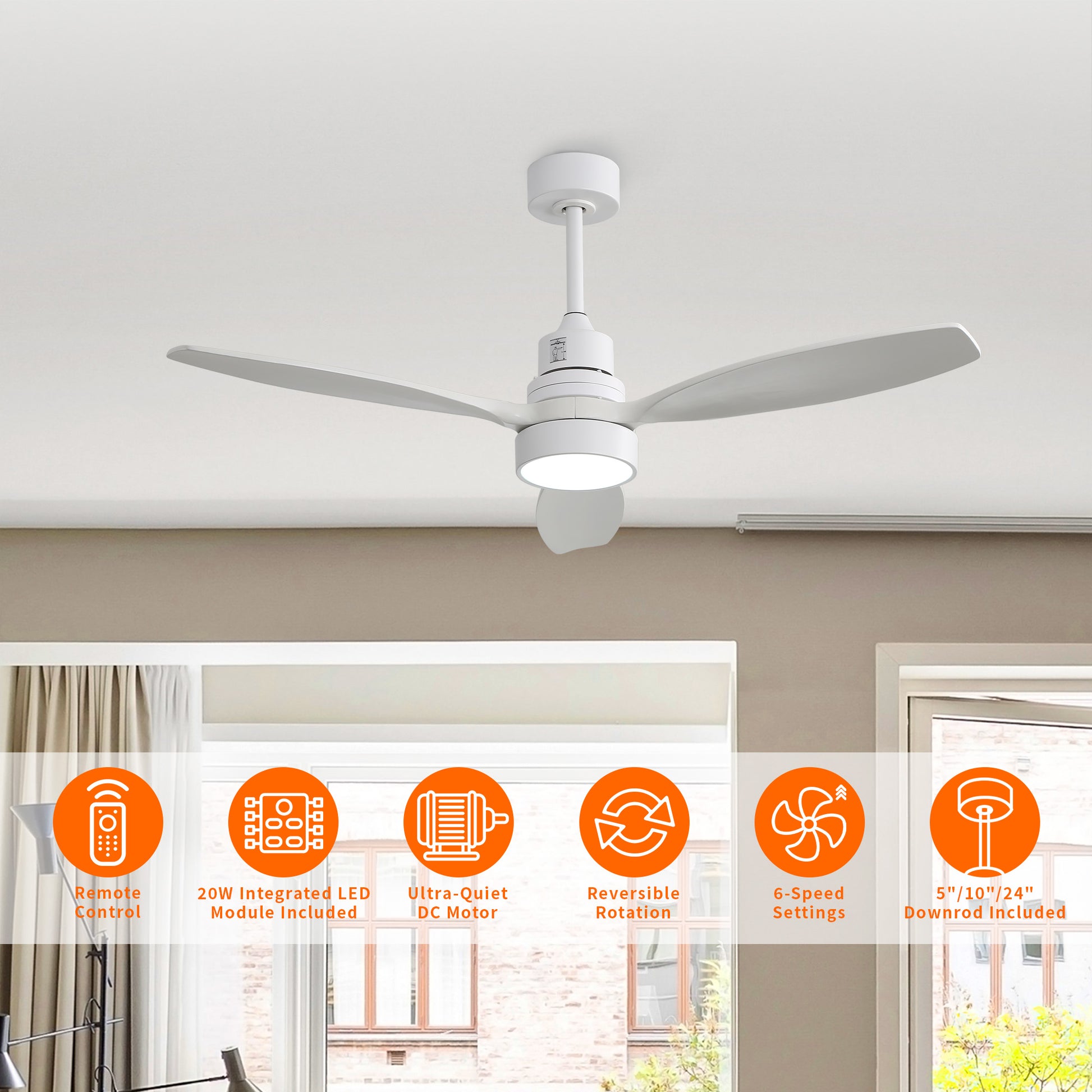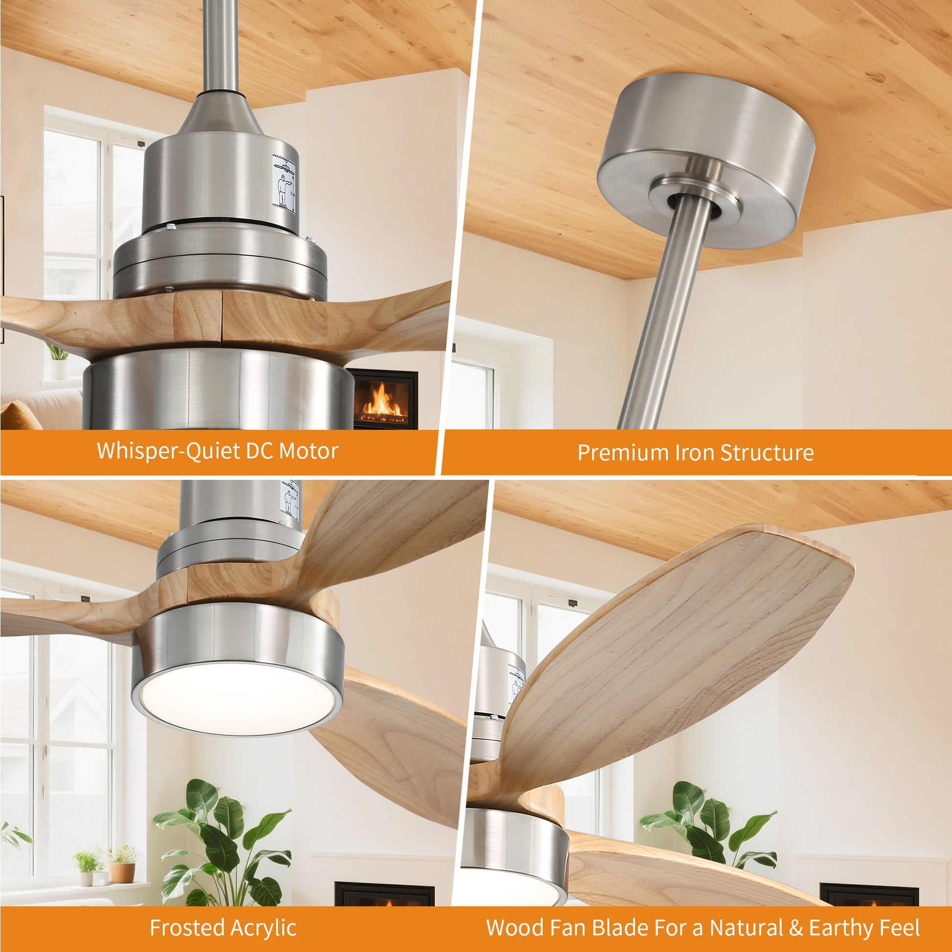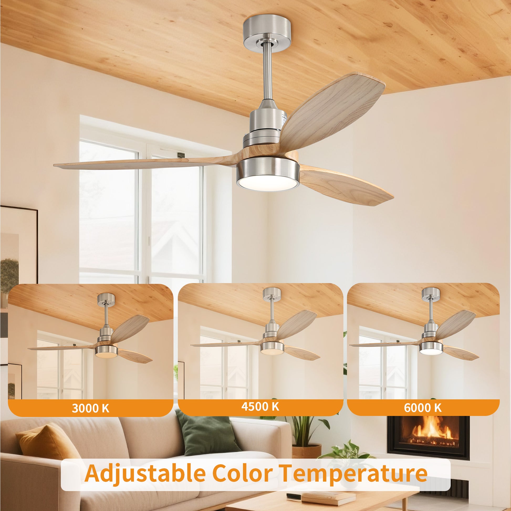 Refine your space with the sophisticated balance of function and style offered by the Taimei 52-inch ceiling fan.Designed with natural wood-finish blades and a sleek nickel body, this fan adds warmth and modern polish to any interior. The integrated LED light delivers soft, energy-efficient illumination, while the 6-speed DC motor ensures whisper-quiet performance and highly customizable airflow. With a full-function remote control, you can easily adjust speed, lighting, and direction to suit your comfort in every season. Whether you're updating a living room, bedroom, or open-concept space, the Taimei ceiling fan combines smart performance with timeless design-making it a centerpiece that cools, brightens, and enhances.