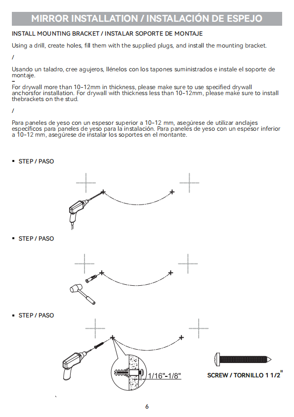 EASY INSTALLATION: | Includes hardware and clear instructions for drywall installation with extra anchor support. |