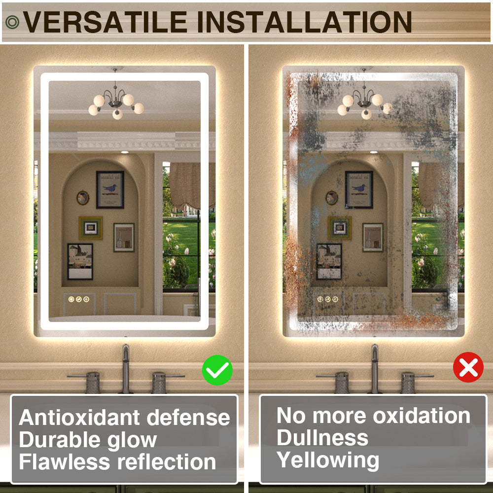 TOUCH CONTROL: | Adjust color temperature (3000K to 6500K) and brightness with a 90+ CRI for accurate reflections. |