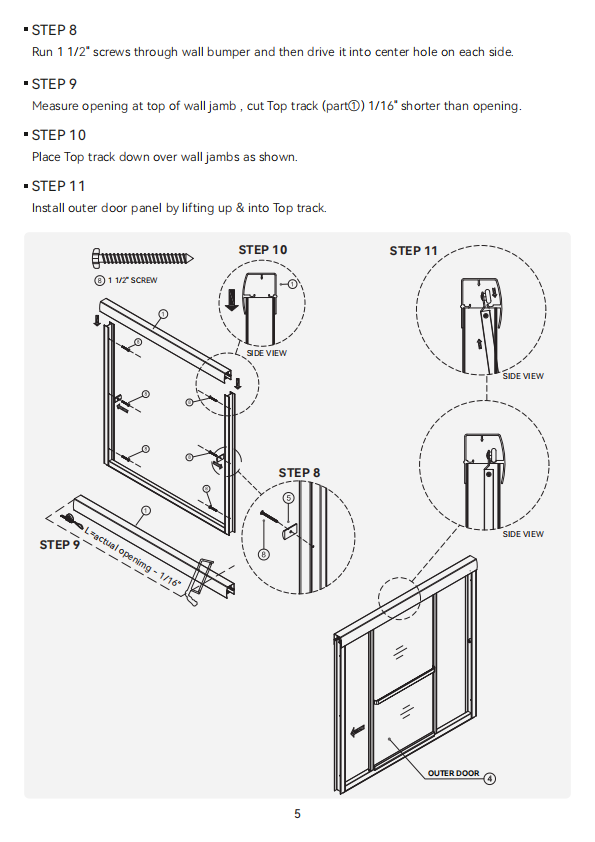 Flexible Width Adjustment: | Easily adjust the width from 55 inches to 59 inches through cutting the top bar and bottom track, providing flexibility for personalized installation requirements. |