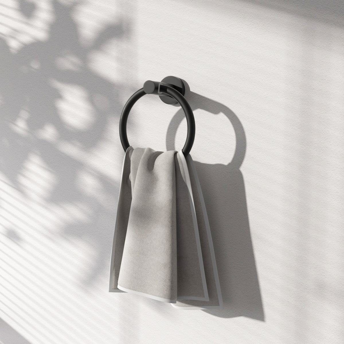 Looking to elevate your bathroom with a touch of modern elegance and thoughtful design? Consider our premium towel ring from the Taimei Collection. Featuring a fully-enclosed circle design, this towel holder prevents towels from slipping off while offering a smooth 180° swivel motion without any noise. Crafted from thick space aluminum, this rust-resistant towel ring ensures durability and longevity. Its seamless, solid base design prevents rotation and hides screws for a clean, polished look. With a 2.6 in. clearance from the wall, it optimizes space and allows towels to dry efficiently. The towel ring is available in four sophisticated finishes-Matte Black, Brushed Gold, and Gun Grey-making it the perfect addition to any modern bathroom. Plus, all mounting hardware is included for hassle-free installation.