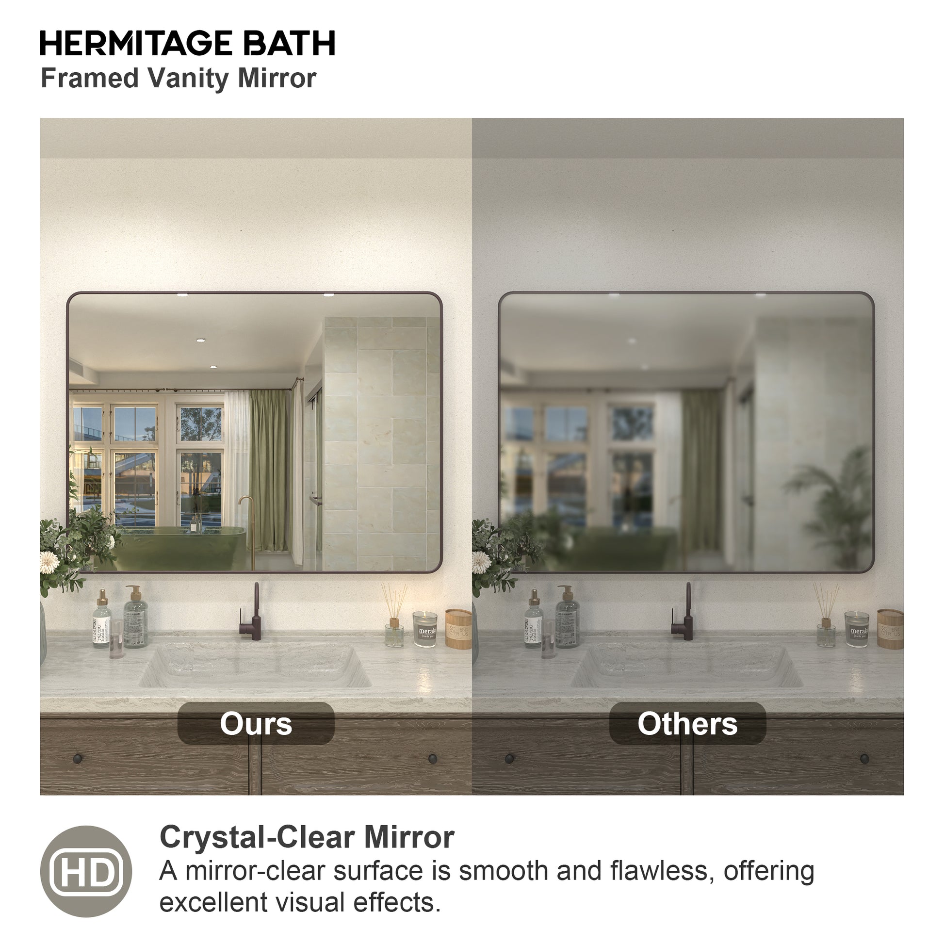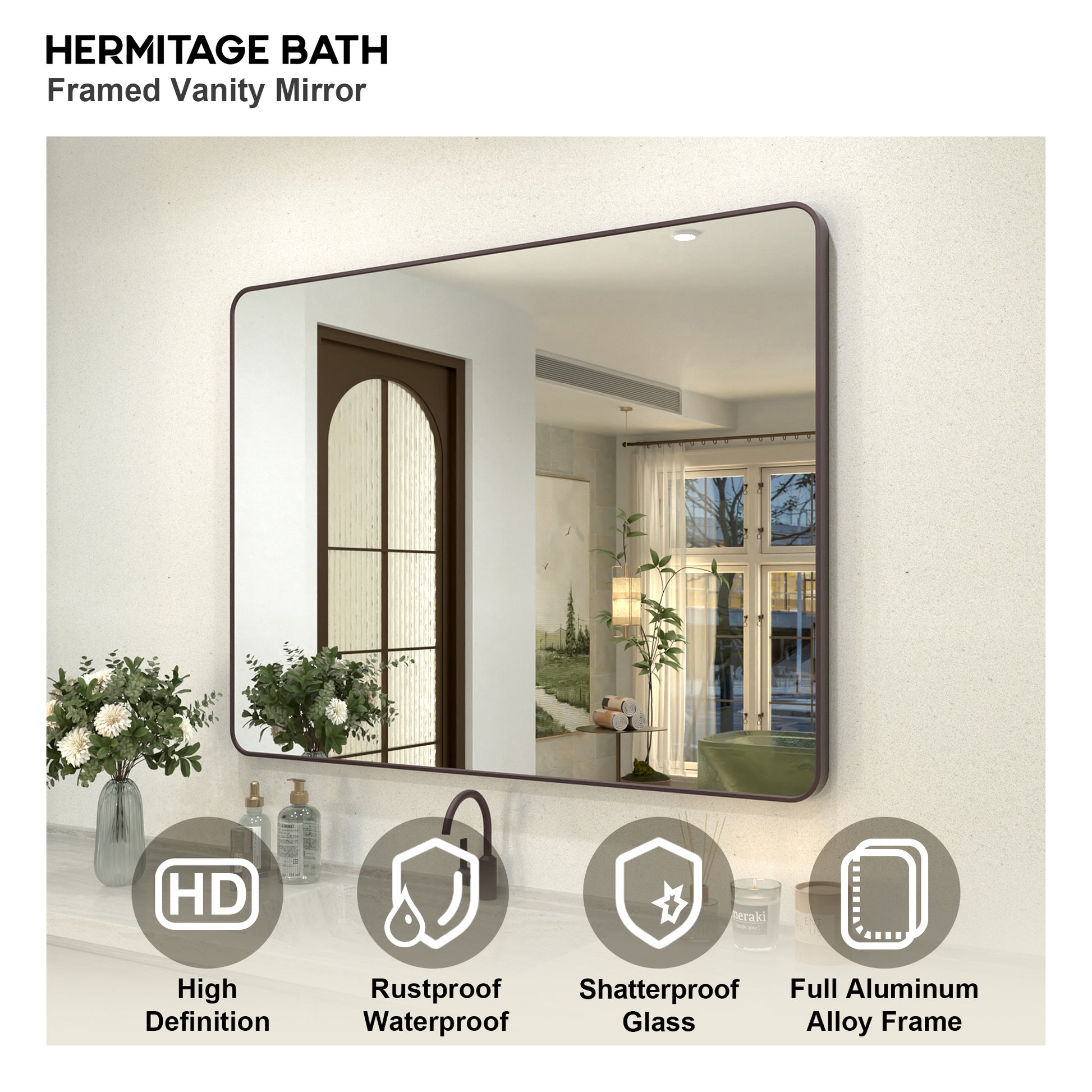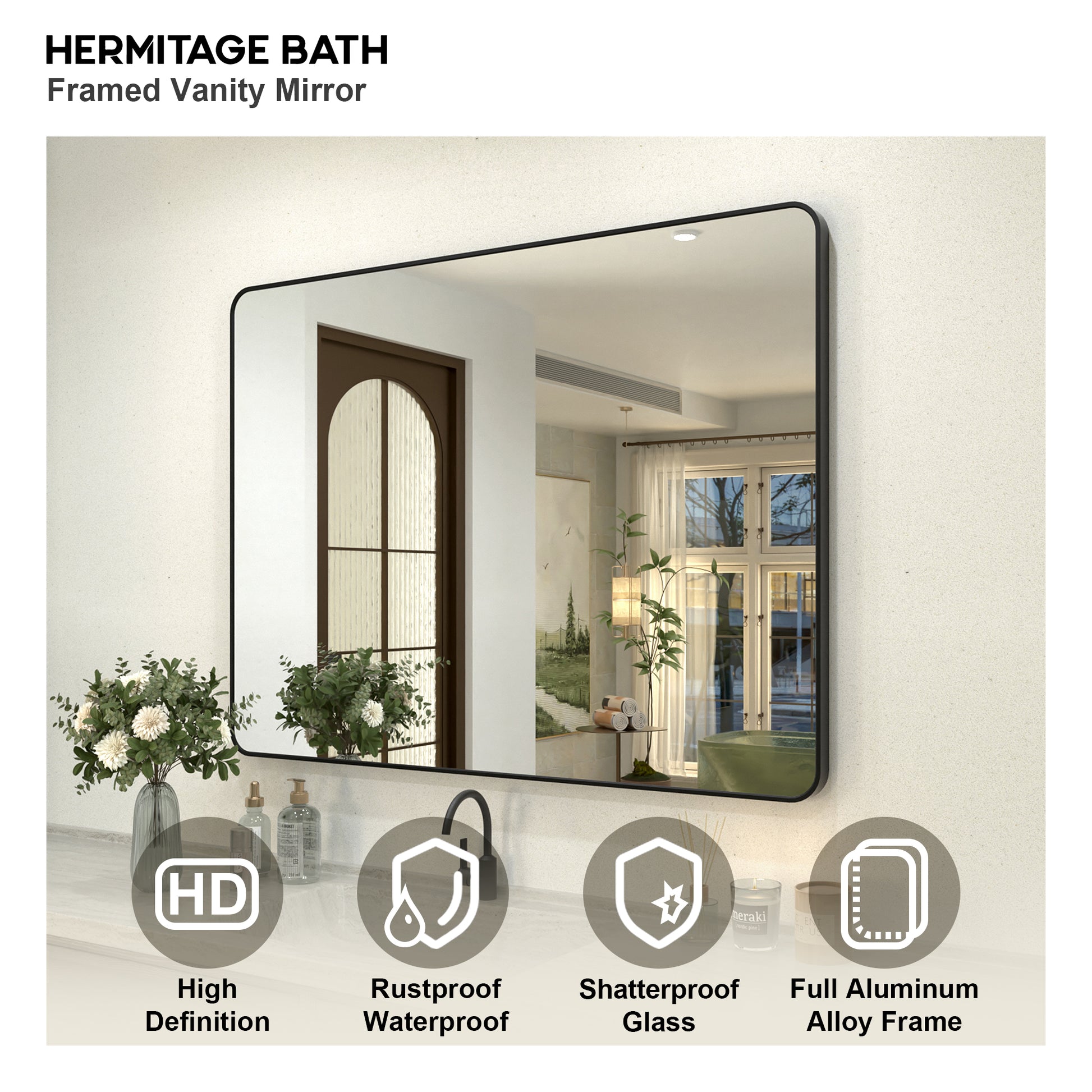 Collection. With its premium tempered mirror and refined matte black anodized aluminum frame, the Hermitage Bath Classic Framed Vanity Mirror Collection brings a lasting sense of opulence, elevating your bathroom to new heights. Embrace luxury in your daily routine with Hermitage Bath , where every gaze is immersed in the brand's distinct aura of sophistication. Experience the timeless beauty of American traditional style, embraced by the essence of Hermitage Bath.