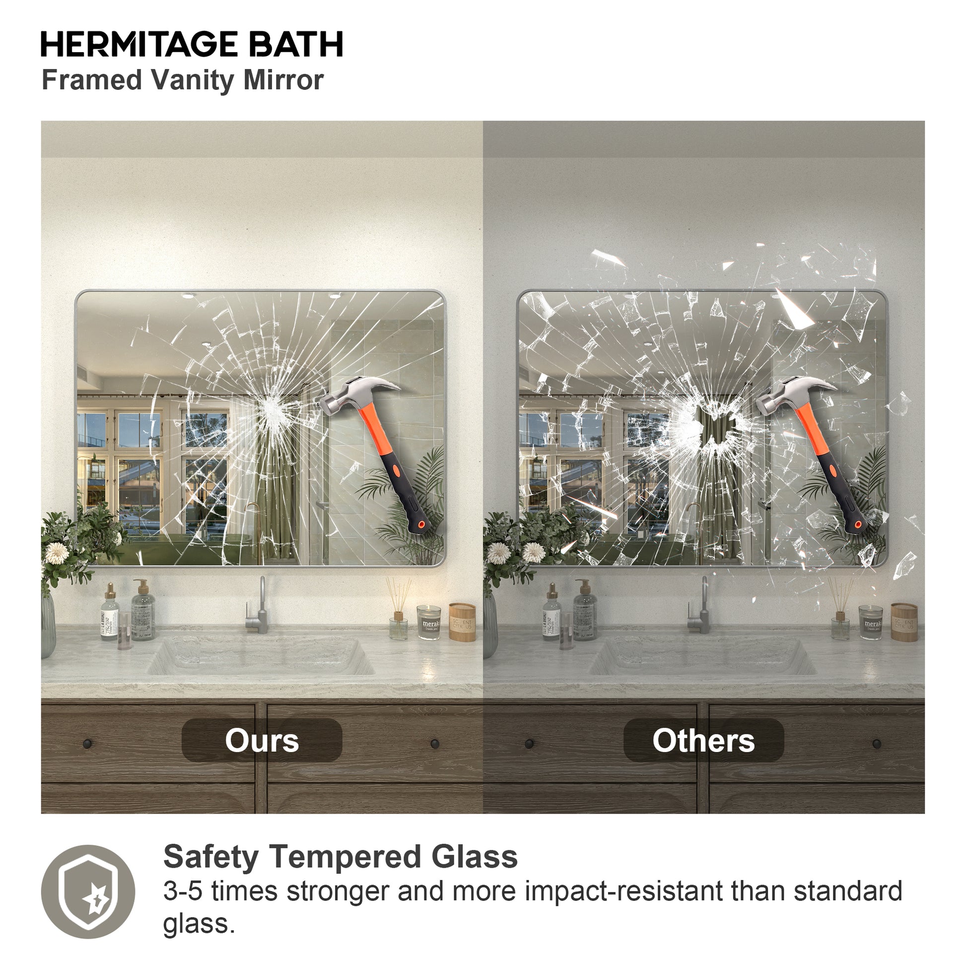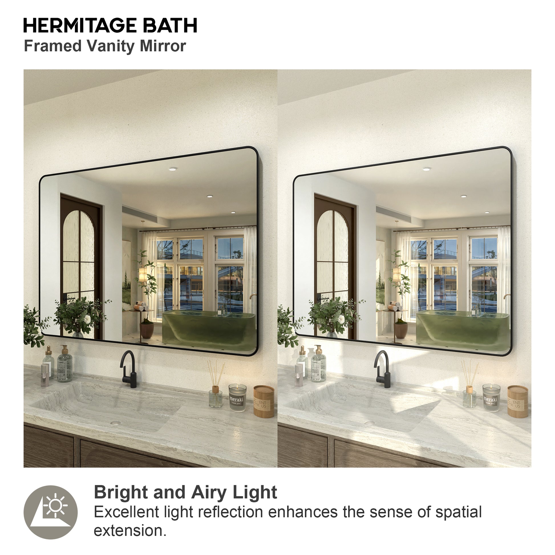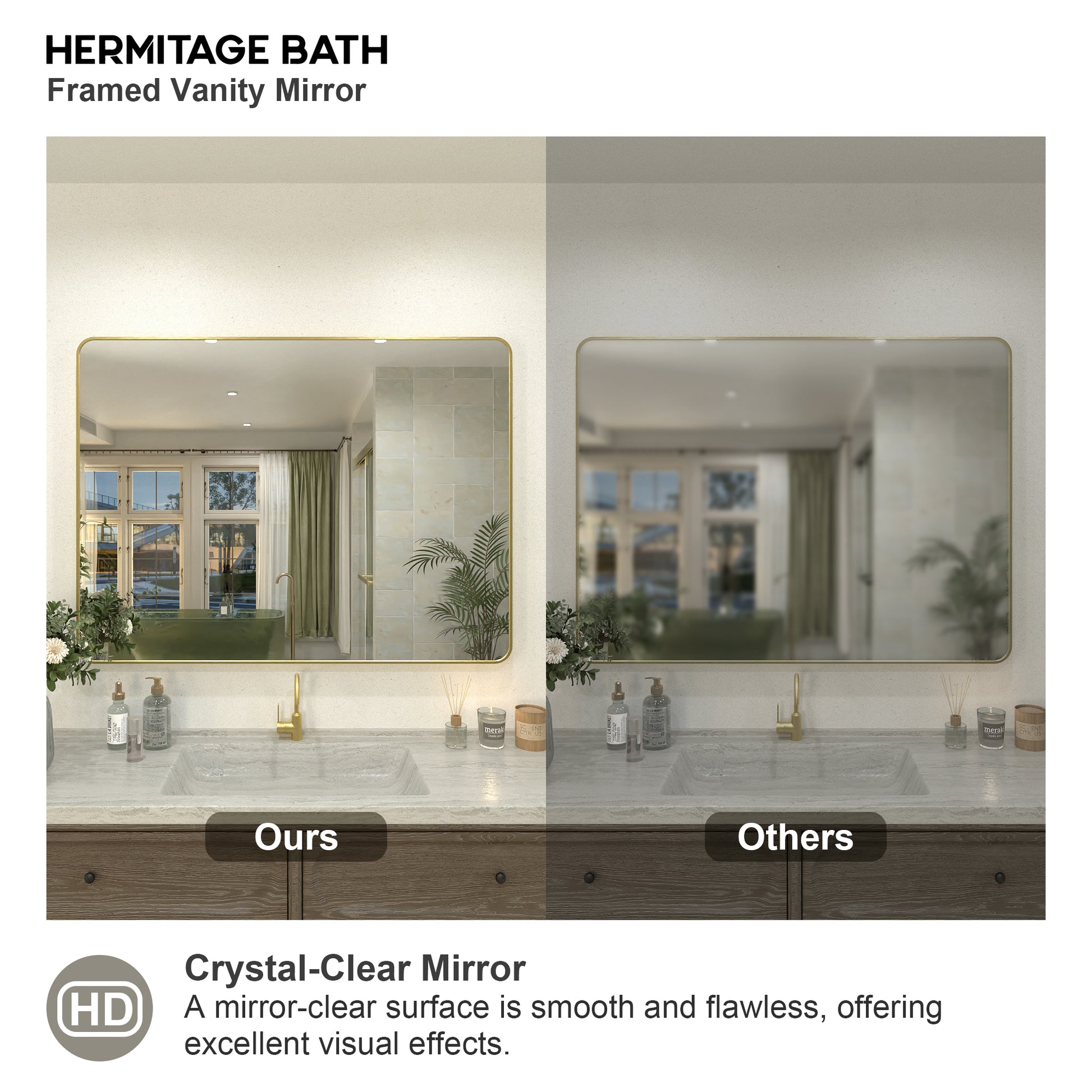 Collection. With its premium tempered mirror and refined matte black anodized aluminum frame, the Hermitage Bath Classic Framed Vanity Mirror Collection brings a lasting sense of opulence, elevating your bathroom to new heights. Embrace luxury in your daily routine with Hermitage Bath , where every gaze is immersed in the brand's distinct aura of sophistication. Experience the timeless beauty of American traditional style, embraced by the essence of Hermitage Bath.