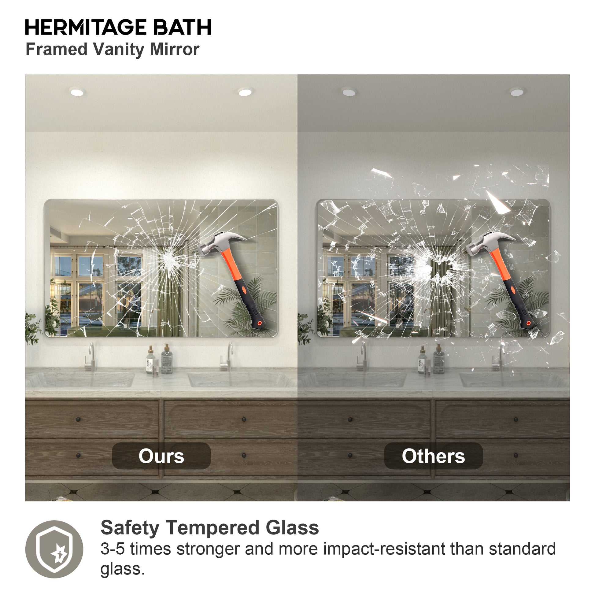 Searching for an exquisite touch of elegance and American traditional style in your bathroom? Look no further than Hermitage Bath Classic Framed Vanity Mirror Collection. With its premium tempered mirror and refined Brass anodized aluminum frame, the Hermitage Bath Classic Framed Vanity Mirror Collection brings a lasting sense of opulence, elevating your bathroom to new heights. Embrace luxury in your daily routine with Hermitage Bath, where every gaze is immersed in the brand's distinct aura of sophistication. Experience the timeless beauty of American traditional style, embraced by the essence of Hermitage Bath.